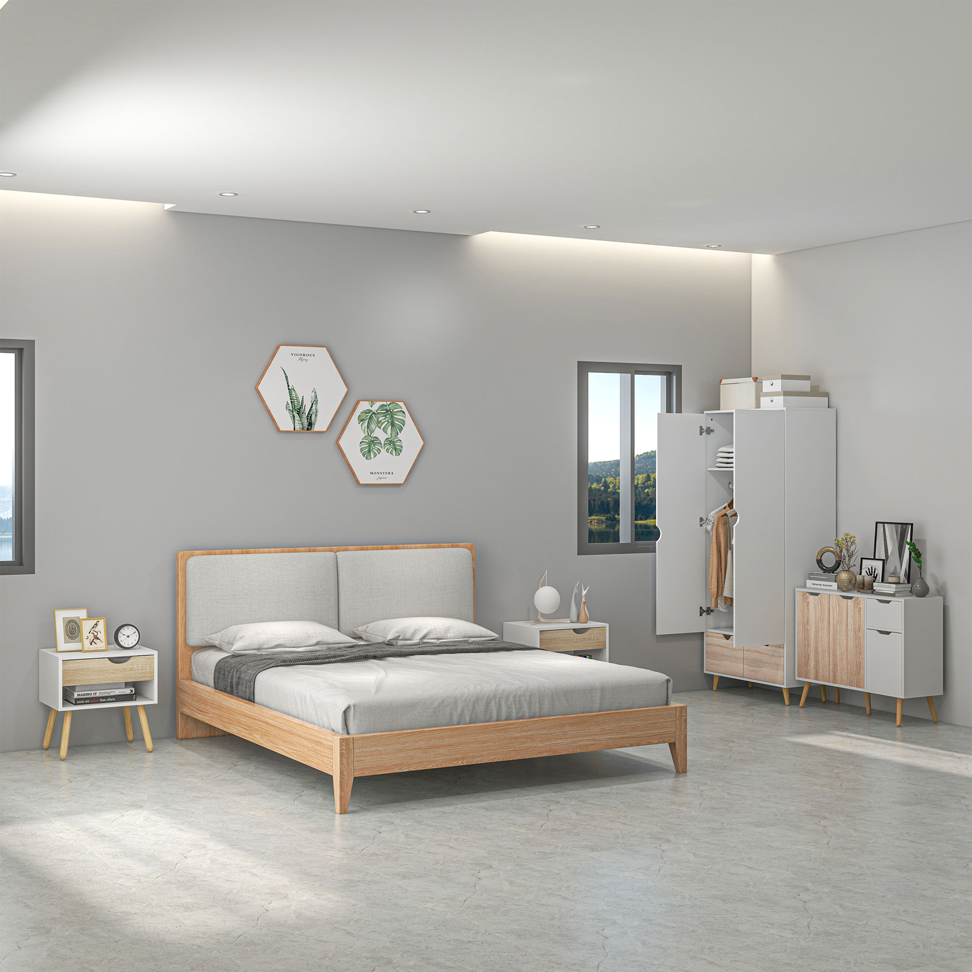 Transform your sleep space with the HOMCOM Bedroom Furniture Set. Modern, chic design meets practicality to brighten and organise your sanctuary. The side cabinet and large wardrobe offer plenty of room for all your essentials, while two end tables provides a handy spot for your nighttime necessities. Easy to assemble, so you can rejuvenate your room in a snap. Get ready to rest in style!