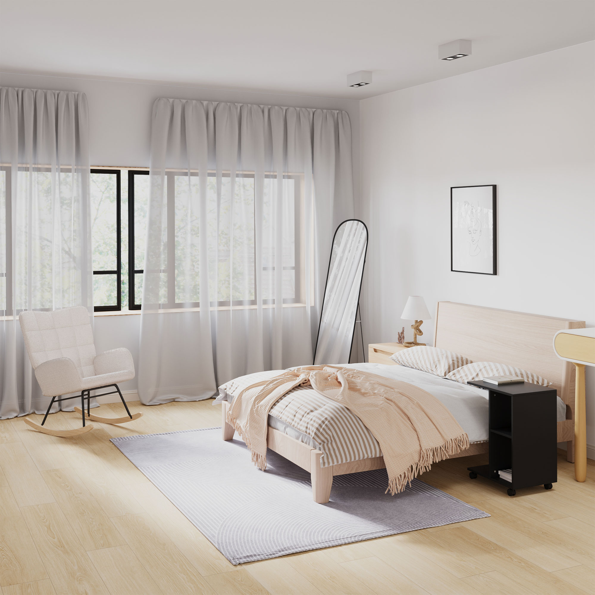 Let the unique design of this 'C' table, from HOMOM, lead the way for keeping your home tidy. Featuring two open shelves for storage and display. The open end can be used as both extra storage and slotting into spots to extend the surface space, with the four wheels allowing it to move easily; two can be locked to keep the table in place. It's finished with a melamine coating, making it smooth, protected against light markings and easy to clean.