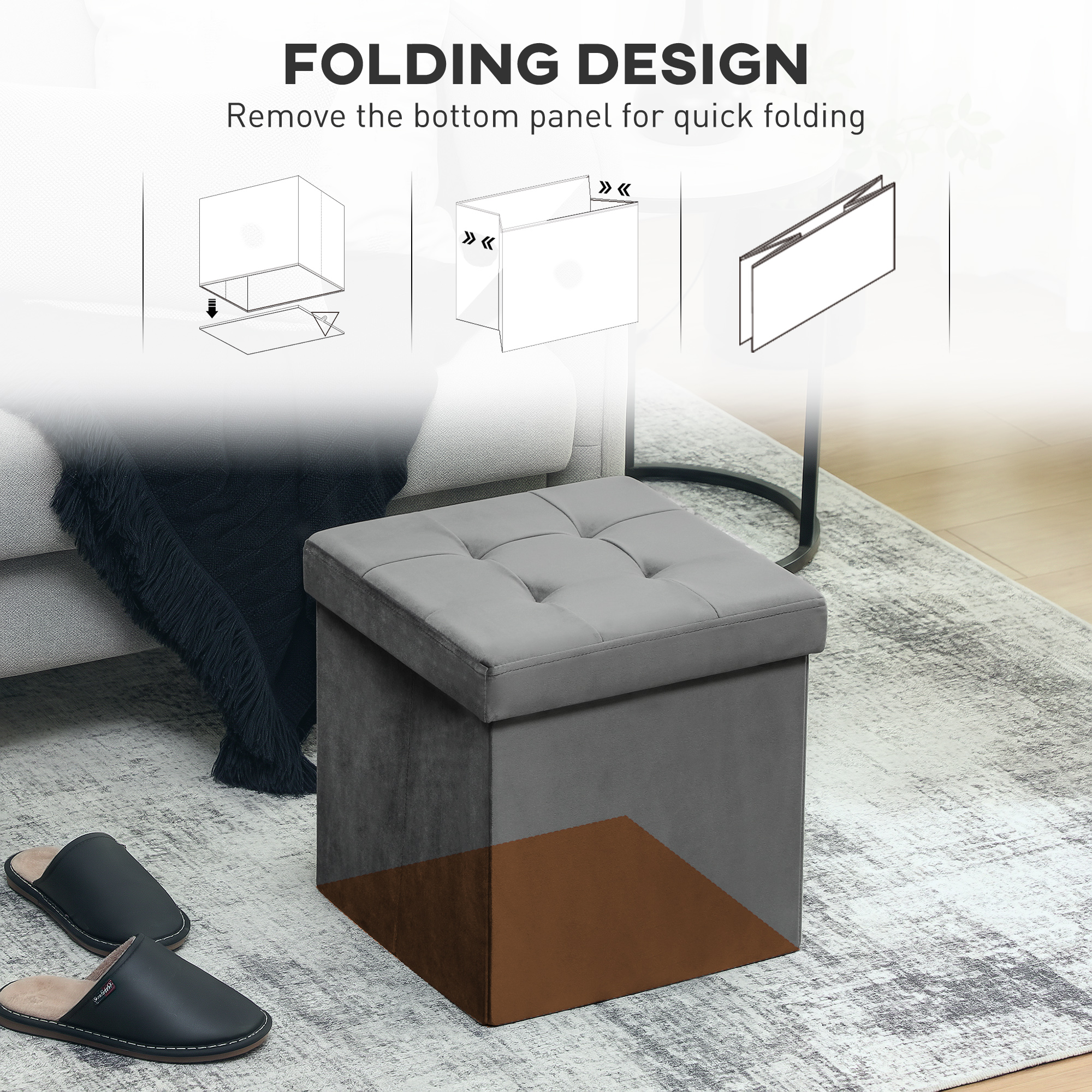 Transform your living space with the HOMCOM storage ottoman. Struggling with clutter in your small flat? This foldable ottoman storage box offers a chic solution, providing a stylish accent while saving space. Sink into its high-density foam and soft-touch velvet-feel fabric, turning stress into relaxation. Enjoy a clutter-free space and elevate your home's comfort and style effortlessly.