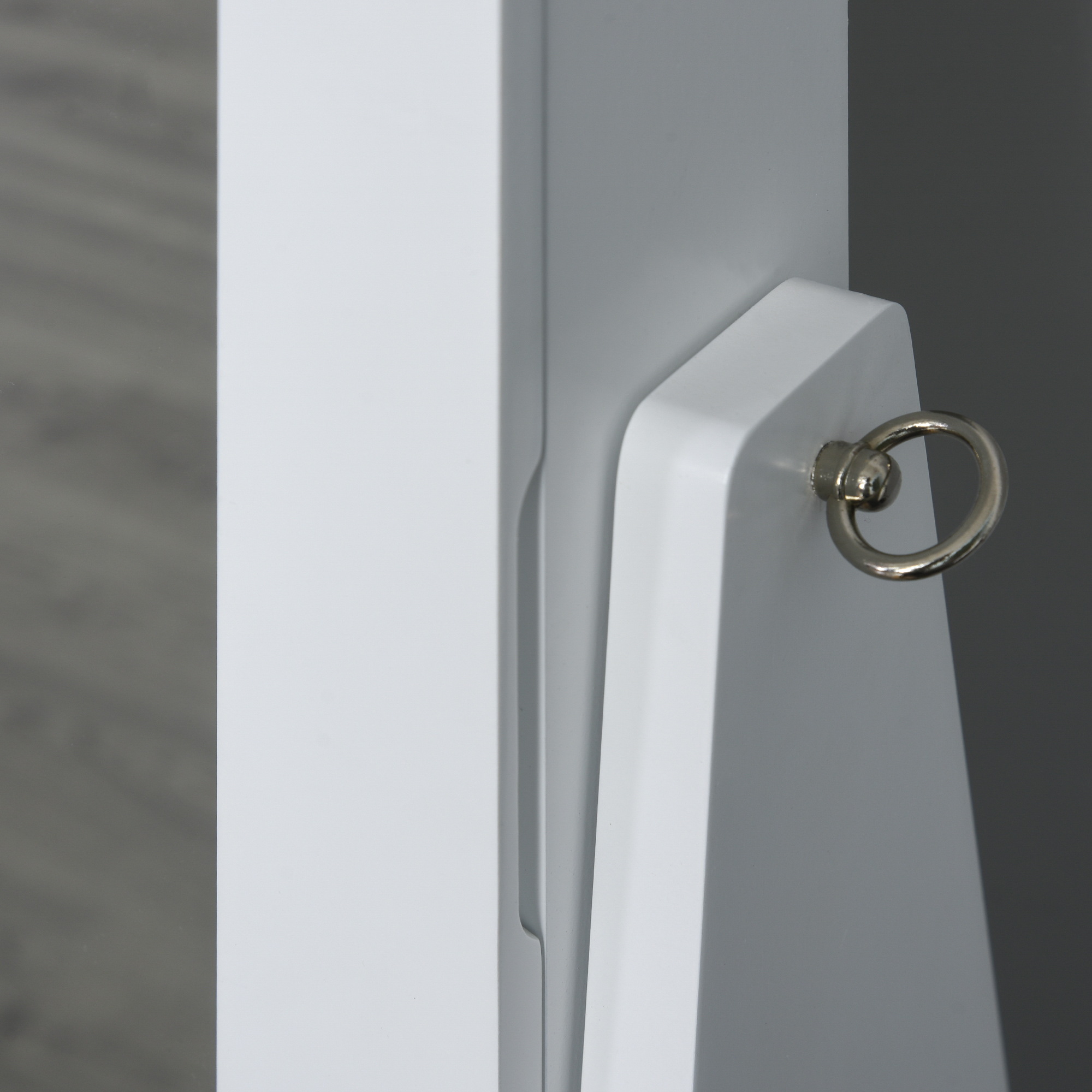 Fusing an elegant design with clever and discreet storage is this jewellery storage mirror from HOMCOM. On the outside, a full-length mirror is placed for you to get ready everyday, with the angle adjustable to suit you. Inside features 80 earring slots, a bracelet hanger, 12 necklace hooks, 98 ring slots, a fold-out panel, two storage shelves, three boxes and four slide-out drawers, giving you more than enough to keep everything stored.