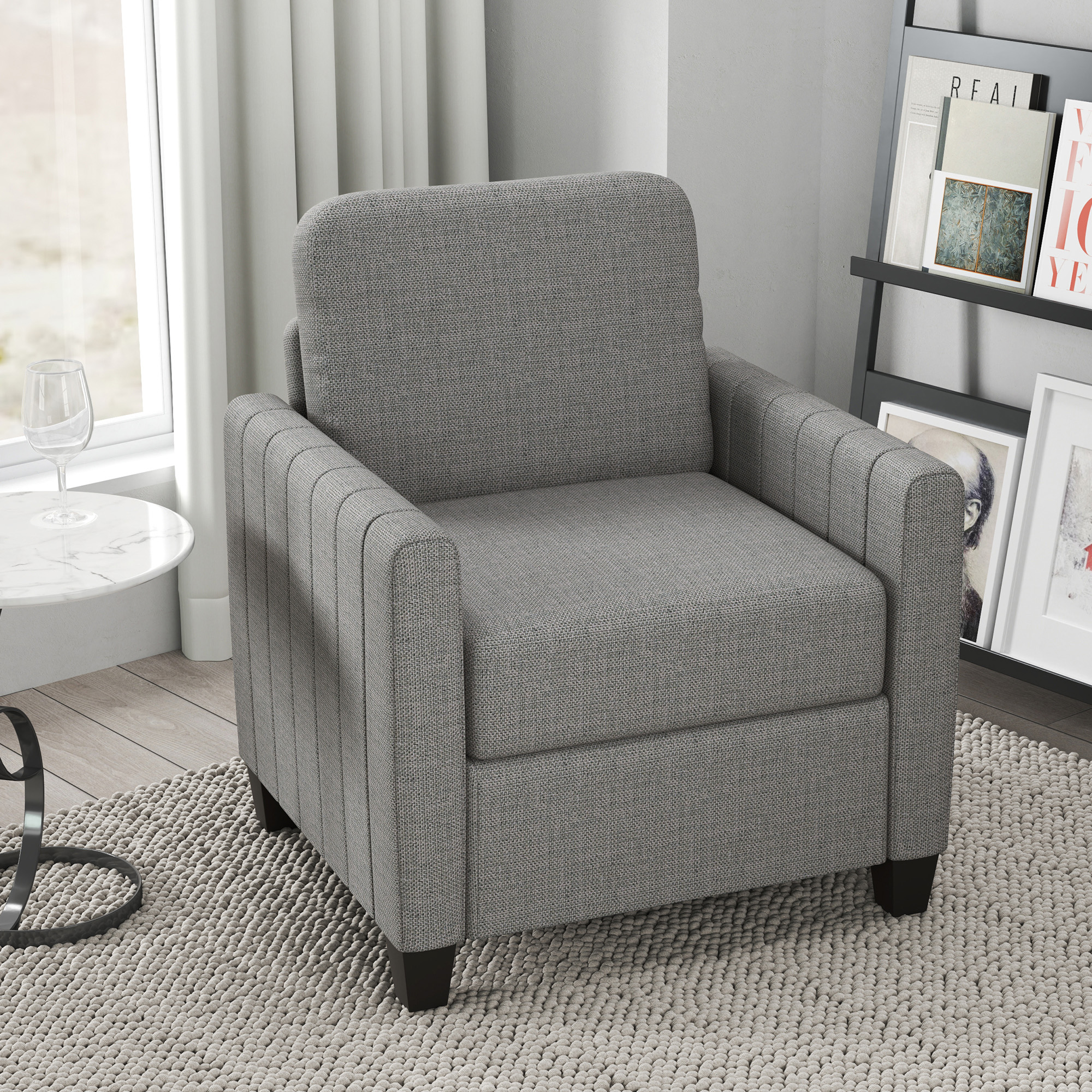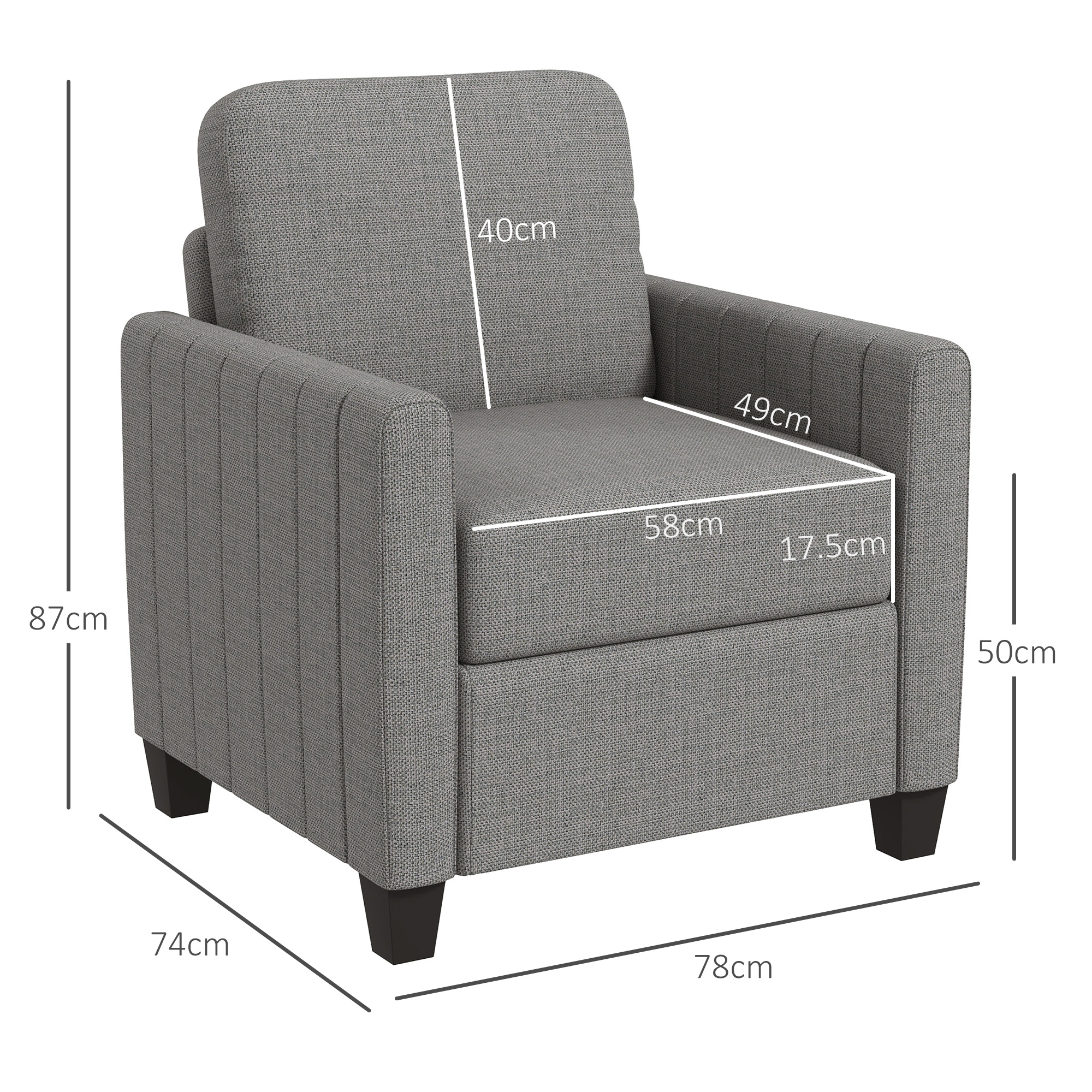 Keep it simple - keep it modern. This HOMCOM armchair is an easy piece for your living room, bedroom, hallway - and wherever you wish. In a boxy shape, in a neutral colour, this is an easy piece to pair with your current furniture and room aesthetic. Filled with high-density foam for soft comfort, the 'S' springs and elastic bands retain the shape. Small armchair is complete with smooth linen-feel fabric upholstery.