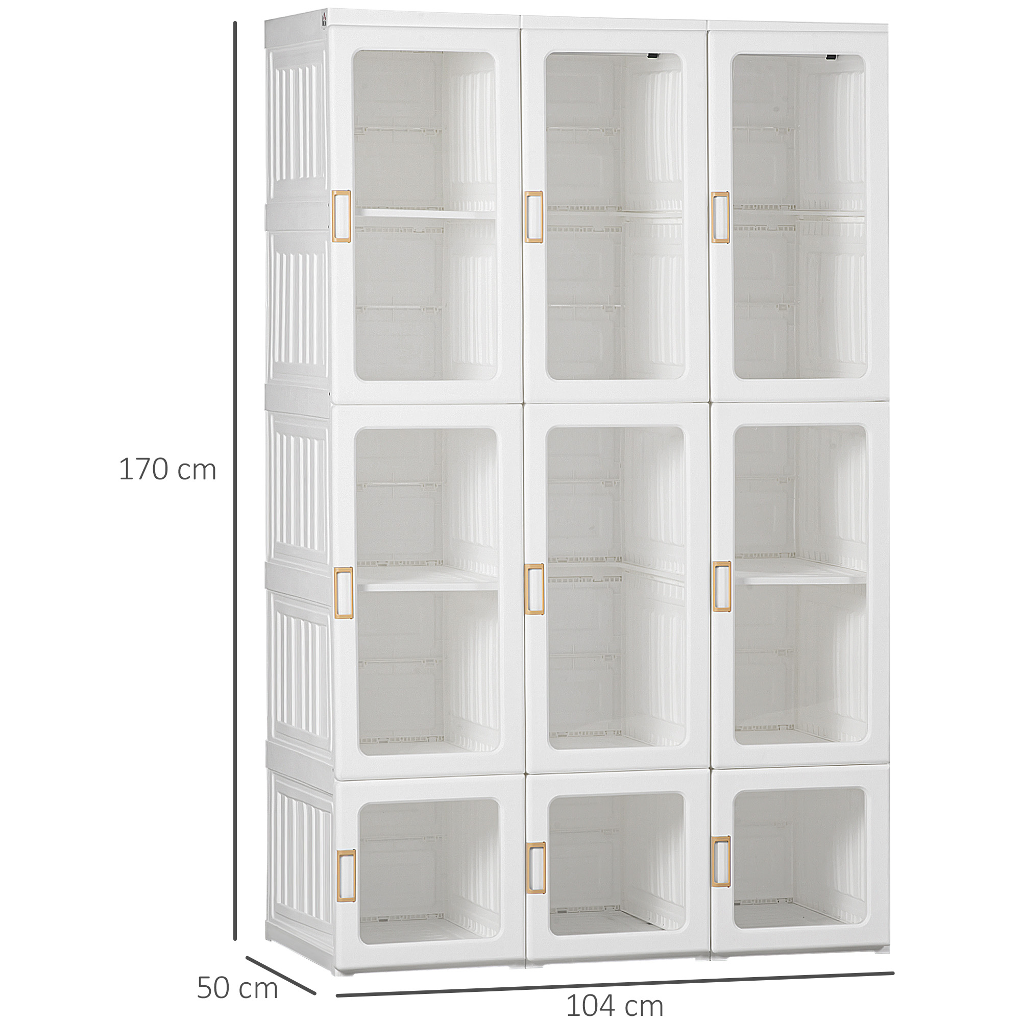 Add a touch of simplicity and style to your home with this HOMCOM portable wardrobe. Featuring clear door panels and a bright, modern design, it fits perfectly in your living room or any space. With modular compartments and two hanging areas, it provides lots of storage for your clothing while combining functionality and elegance to meet your needs.