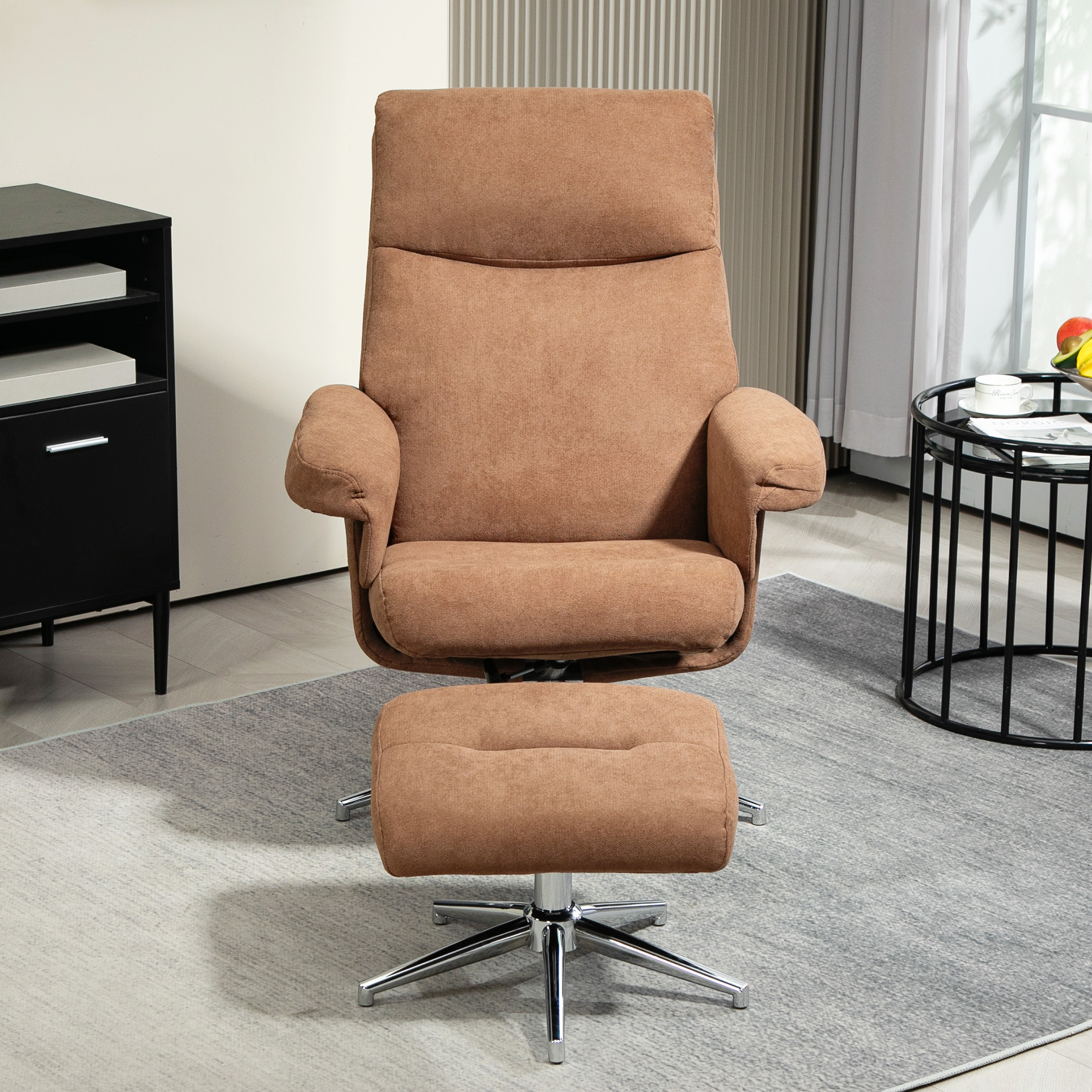 Sink into comfort, anytime, with this HOMCOM recliner chair and footstool set. Adjust the chair back to a maximum 130° angle, to allow you to find your comfort. Pair it with the footstool to elevate and relax your whole body. Both the armchair with footstool have a wooden frame and are fitted with a metal base, so you'll be supported properly; finished with anti-slip foot pads.