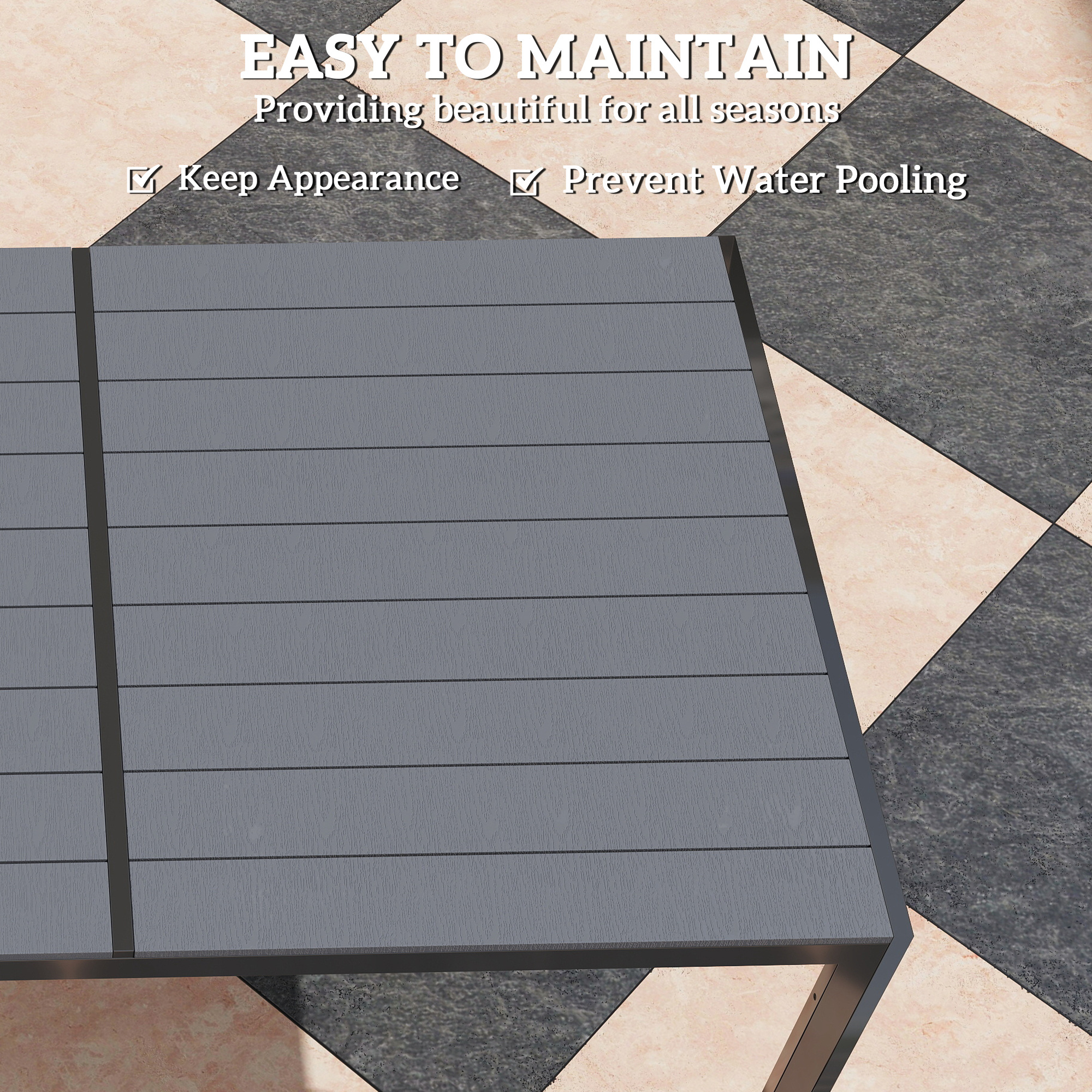 Transform your garden with the Outsunny garden furniture set, featuring a chic 150 cm rectangle table crafted from all-weather wood-plastic composite and six stackable chairs. Whether hosting a barbecue or enjoying a quiet meal, this patio furnitur combines style and functionality, ensuring a comfortable seating experience with its Texteline chairs. Suitable for any outdoor space!