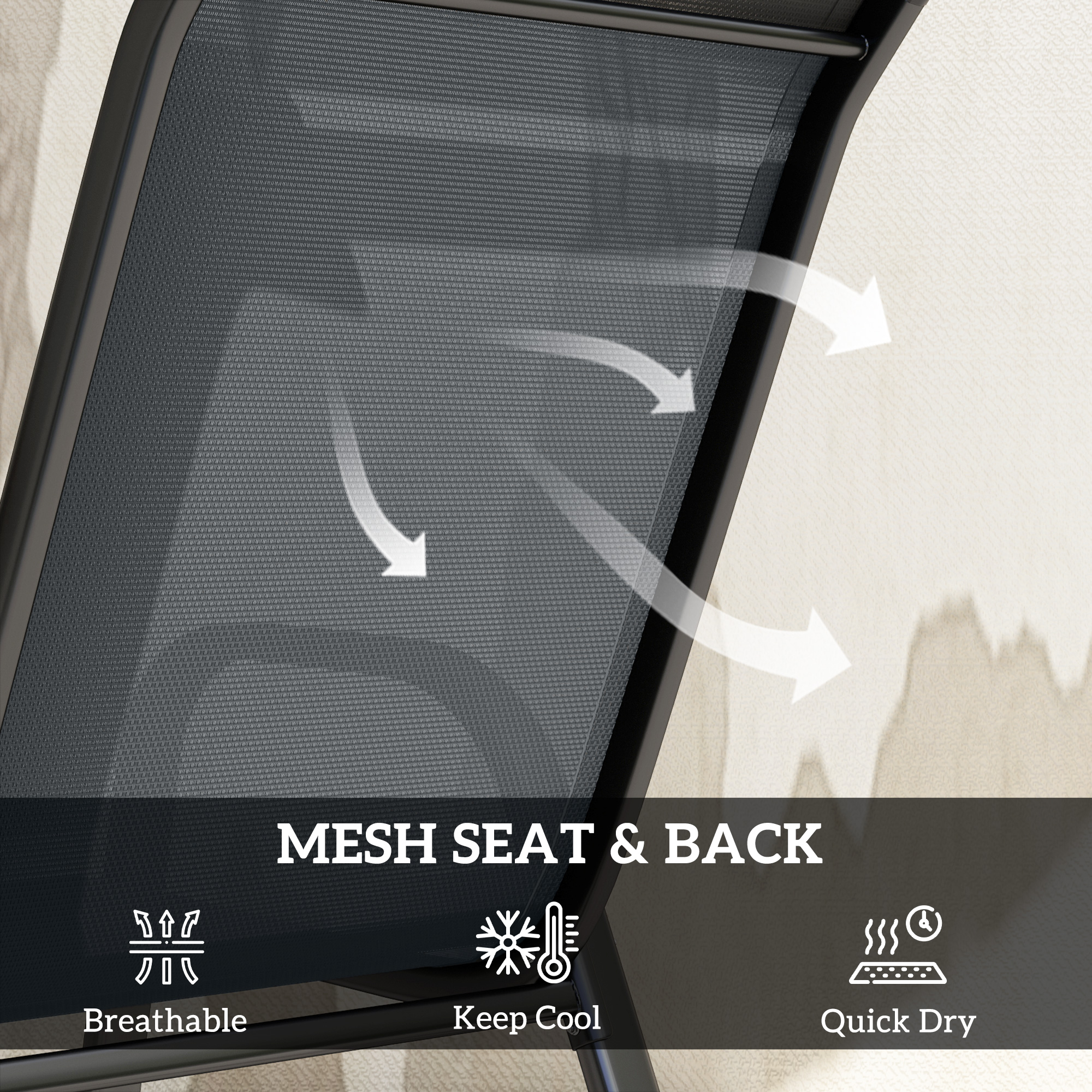 Simple, stylish outdoor garden furniture for relaxing or dining with this Outsunny patio set. It comes with a round table and four chairs to sit outdoors with company; the chairs are stackable to save space when not being use. Powder coated steel frames mean strong, tough cores on the patio table and chairs, suitable for outdoor use. Balcony furniture set is complete with Φ43mm hole in the table to hold a parasol securely in place.
