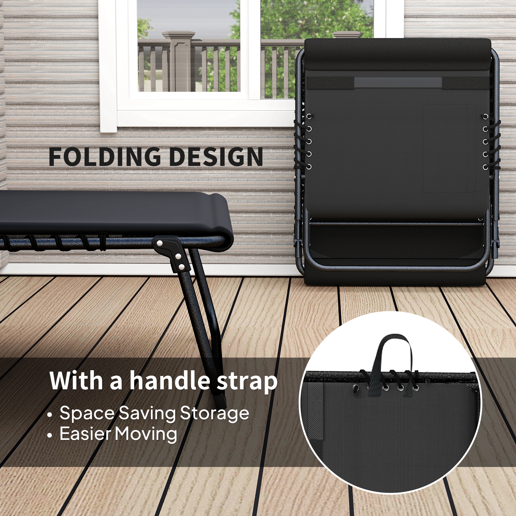 Relax with a friend outdoors with this set of two Outsunny sun loungers. The five-level adjustable backs allow you to recline to a position most comfortable for you. The frames are made from powder coated steel for a strong, supportive core - loungers are complete with handy side pockets.