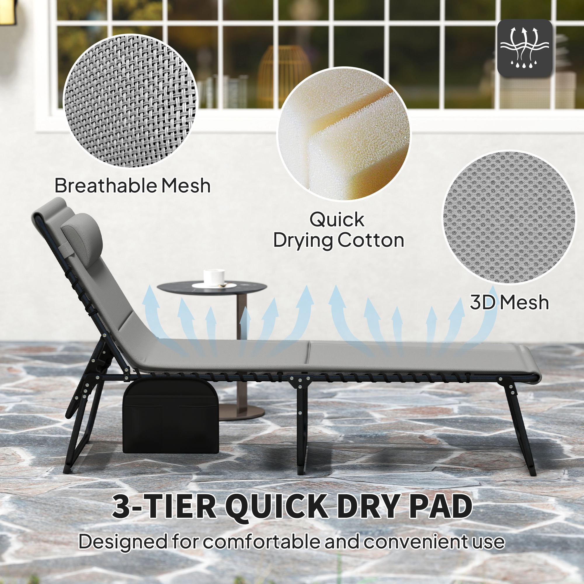 Relax with a friend outdoors with this set of two Outsunny sun loungers. The five-level adjustable backs allow you to recline to a position most comfortable for you. The frames are made from powder coated steel for a strong, supportive core - loungers are complete with handy side pockets.