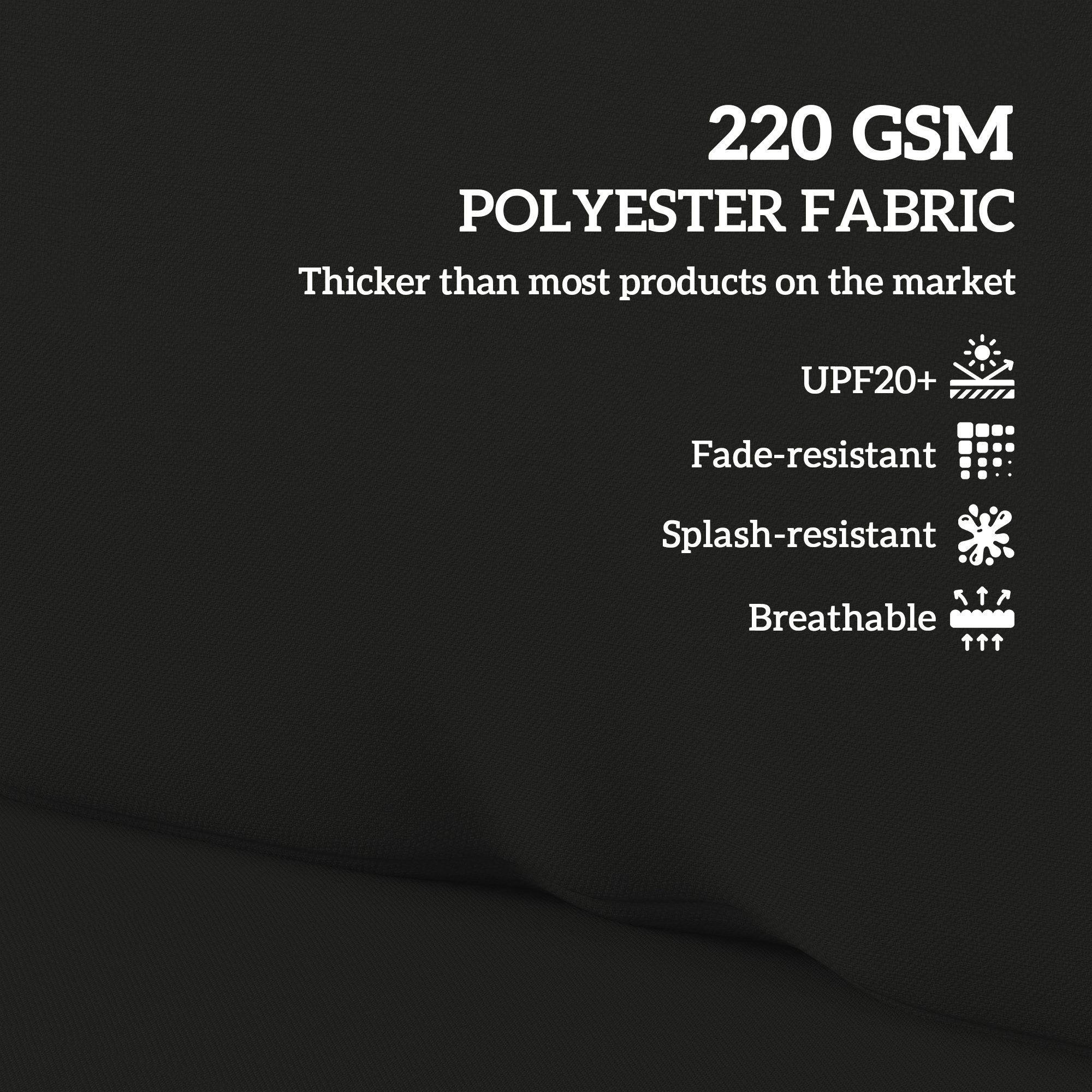 - 220 gsm polyester fabric provides UPF20+ protection. Won't fade