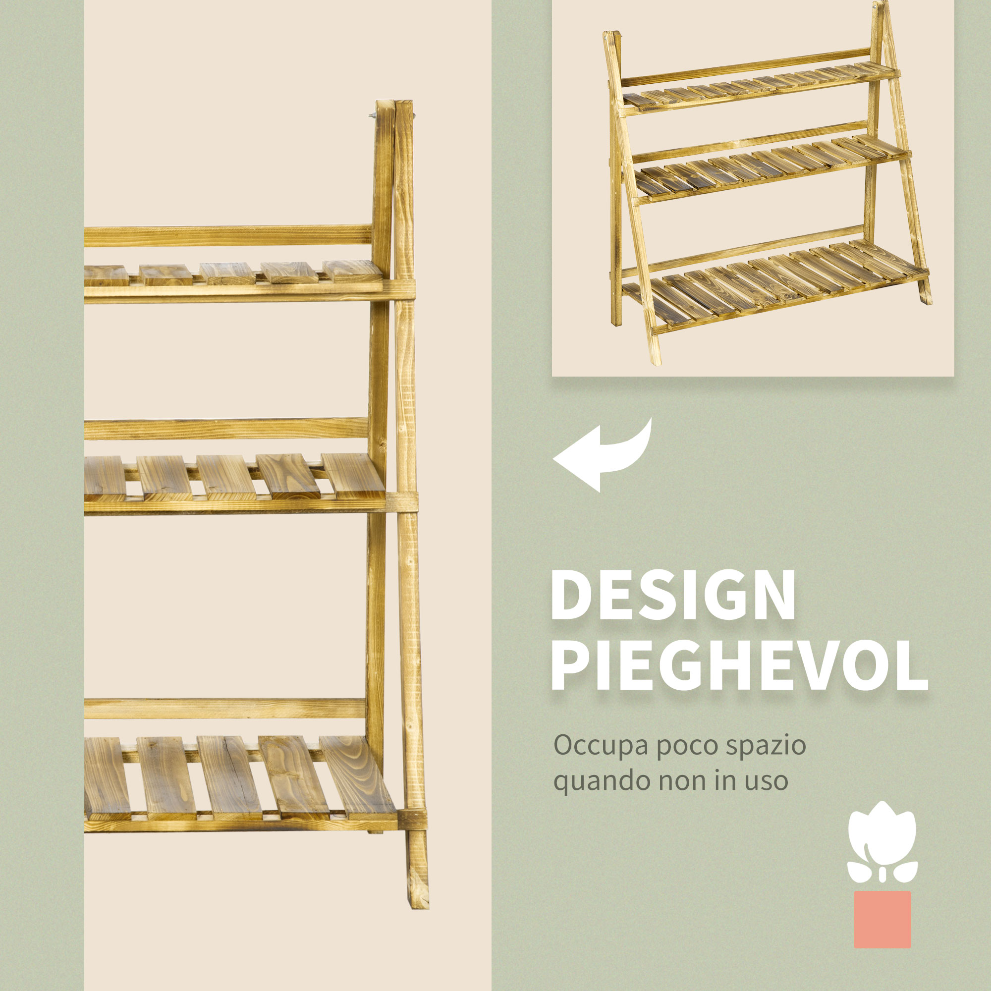 This Outsunny 3 tier pots stand is a great place for you to organize your pots and plants. Made from fir wood in a ladder design is great for small spaces. Ideal for patios, decks, balconies and small green houses. The structure creates a welcoming point in your back garden. This simplistic design can be put up in minutes.