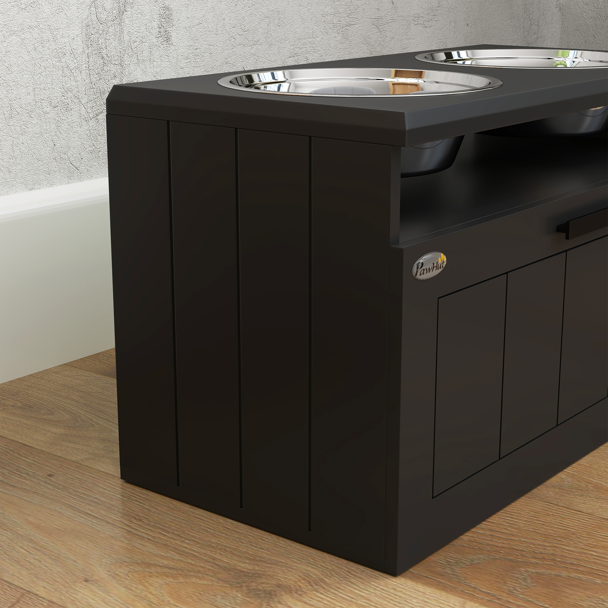 - Hidden compartment to store pet food