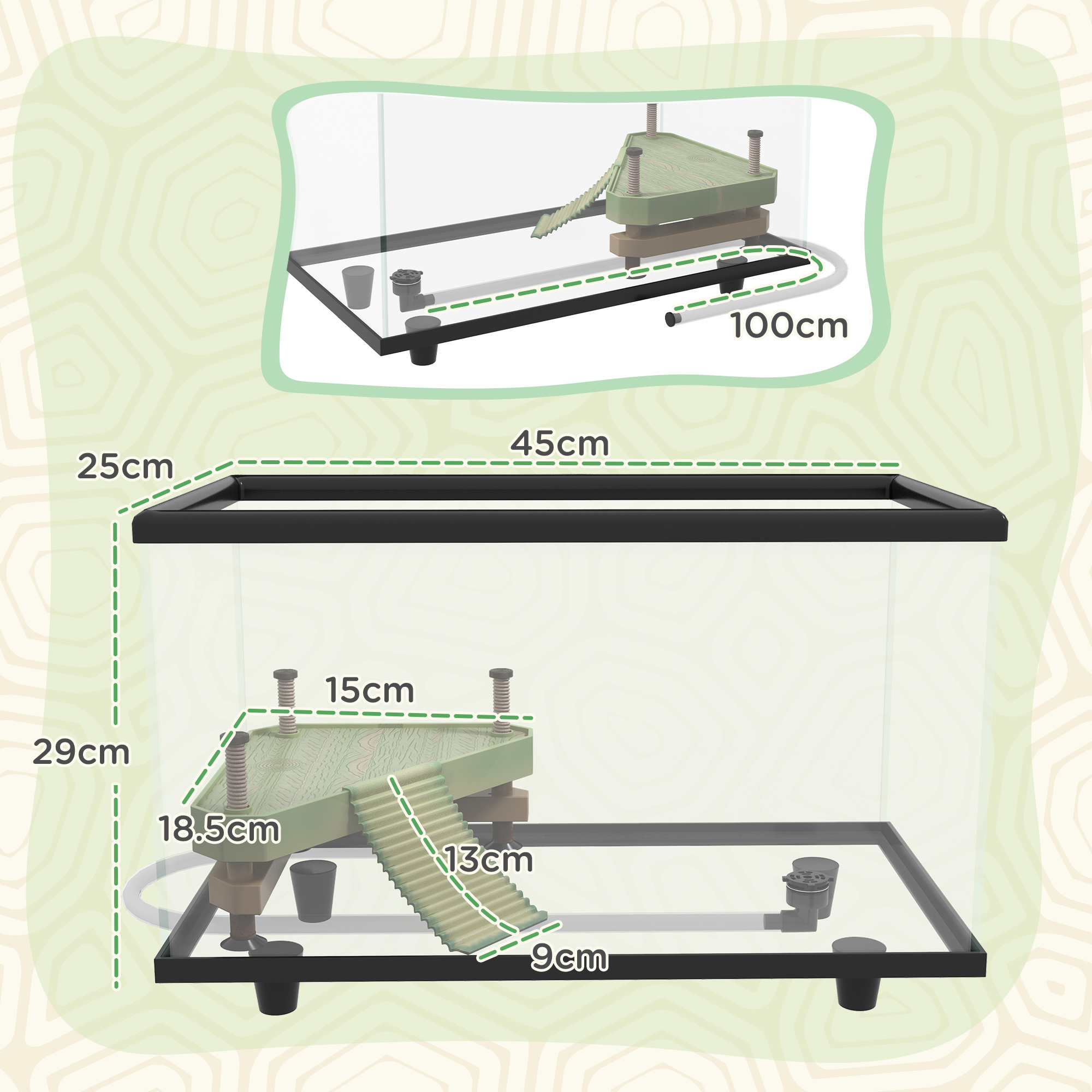 Introducing the PawHut reptile terrarium, making reptile care much easier. It's safe, spacious and well-ventilated, great for lizards, frogs, snakes, turtles and tortoises. With convenient features like easy cleaning, cable management and space for a heating pad, this snake vivarium ensures your reptiles thrive. Finished with a 360° view, you'll watch your reptiles flourish in a wonderful habitat tailored to their needs.