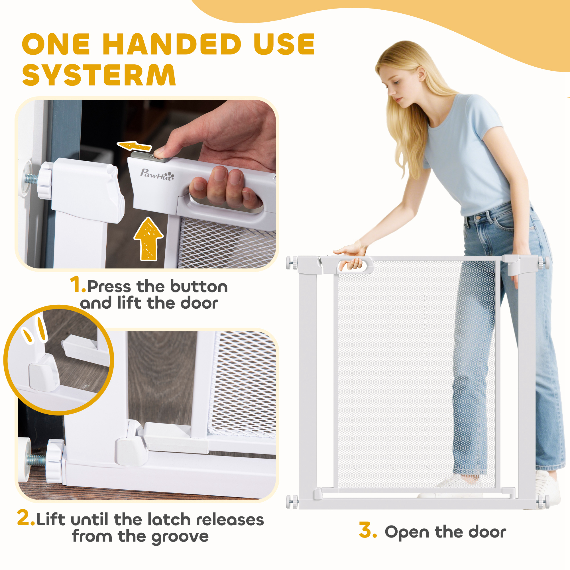 Keep dogs from restricted areas with this PawHut safety gate. Suitable for hallways, doorways and staircases, it has an adjustable width of 75-103cm – perfect for different sized openings. This pet gate automatically closes if it's open at less than 90° – no more worrying about leaving it slightly open. It's pressure-mounted, making it easy to set up; a safe and effective way to stop pets from going where they shouldn't.