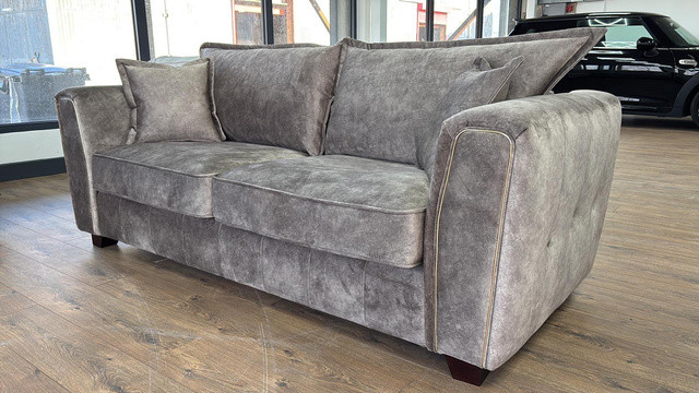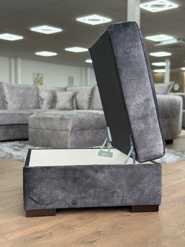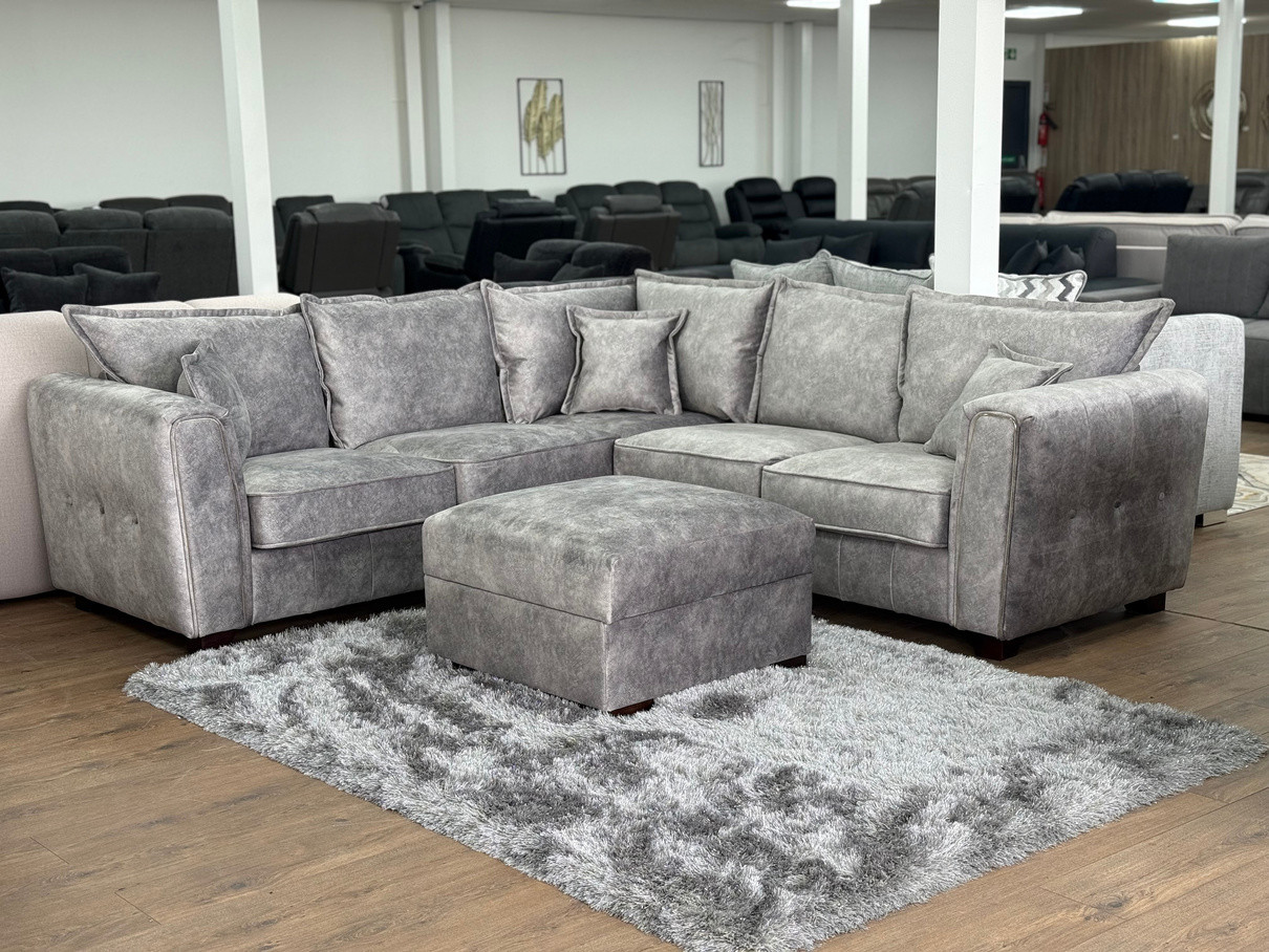 Our Serena range is now available in three stunning colours, a mocha brown, silver grey and a charcoal black. Each color is complimented by a metal trim on the arms, quilted sides, fine wooden feet and high back cushions. T his range is definitely a showstopper! This range includes a Large Corner, 3 + 2 Seater, Armchair and Storage Footstool!